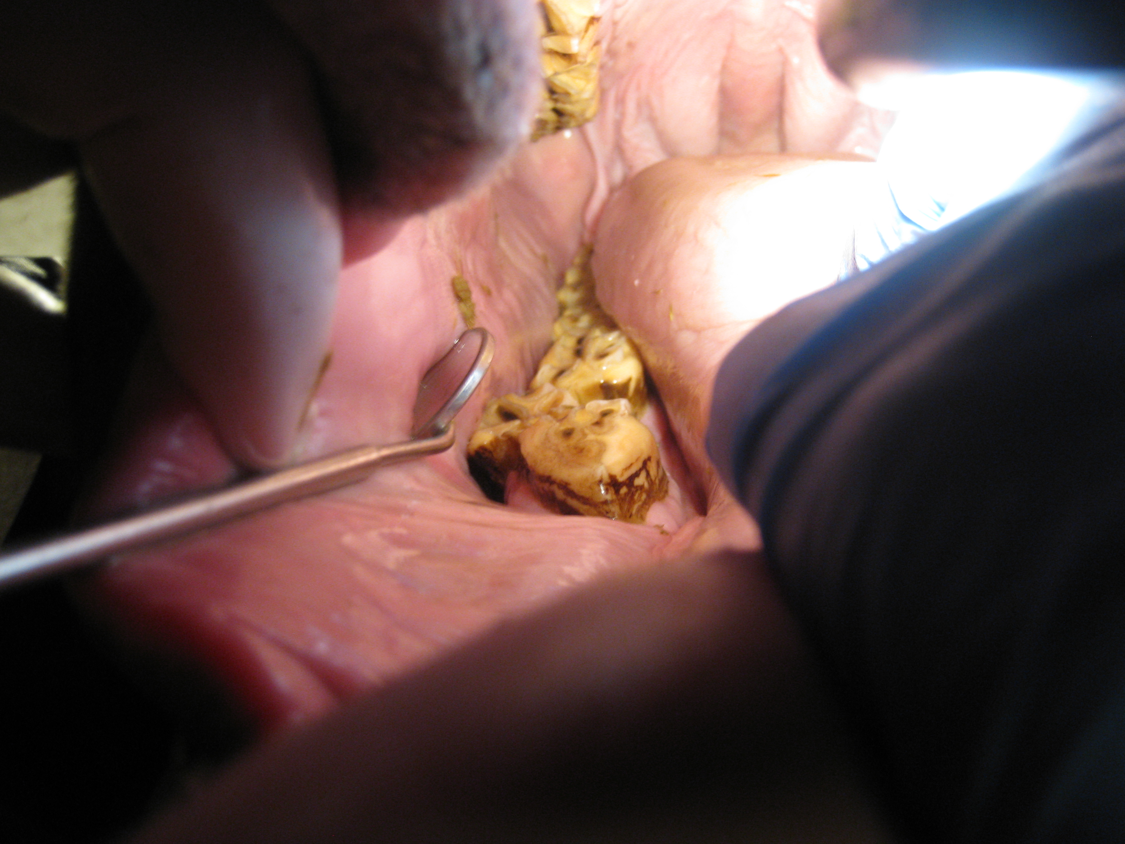 Det är väl värt att behandla foderinpackningarna om man tror att man kan åtgärda grundorsaken. Om grundorsaken inte går att behandla är det bättre att lägga behandlingspengarna på inköp av en annan häst. Det här är viktigt att inse - få hästar blir friska av att veterinären BARA kommer och petar loss inpackat foder var åttonde vecka. Fokus måste vara på att åtgärda grundorsaken!! Under tiden "håller man hästen under armarna" genom att avlägsna förruttnat foder och på olika sätt försöka förhindra att nytt fastnar.